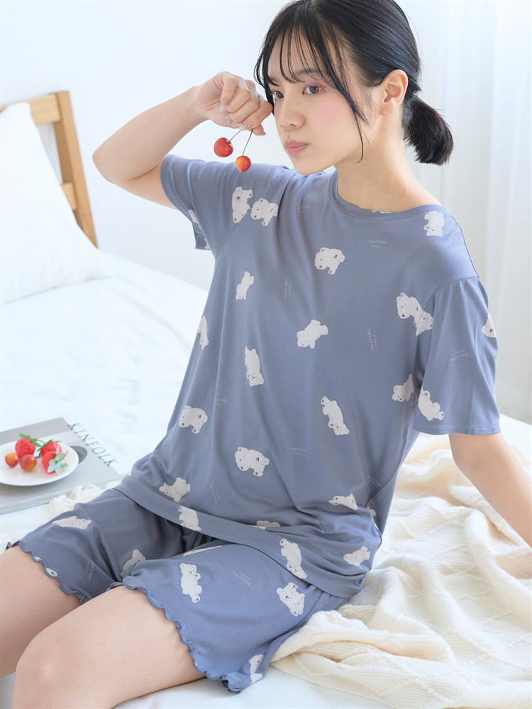 こちらのページは、レーヨン混しろくま総柄半袖Tシャツというルームウェア(部屋着)の商品詳細ページです。