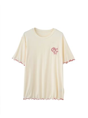 こちらのページは、レーヨン混フェミニンロゴTシャツというルームウェア(部屋着)の商品詳細ページです。
