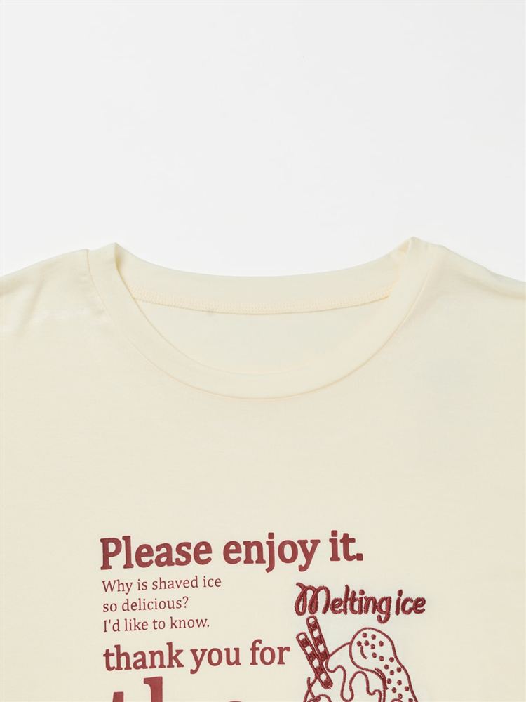こちらのページは、レーヨン混かき氷プリントTシャツというルームウェア(部屋着)の商品詳細ページです。