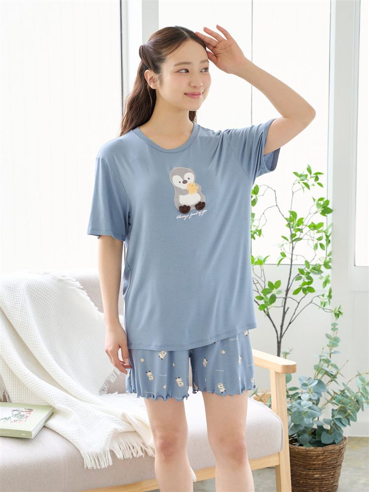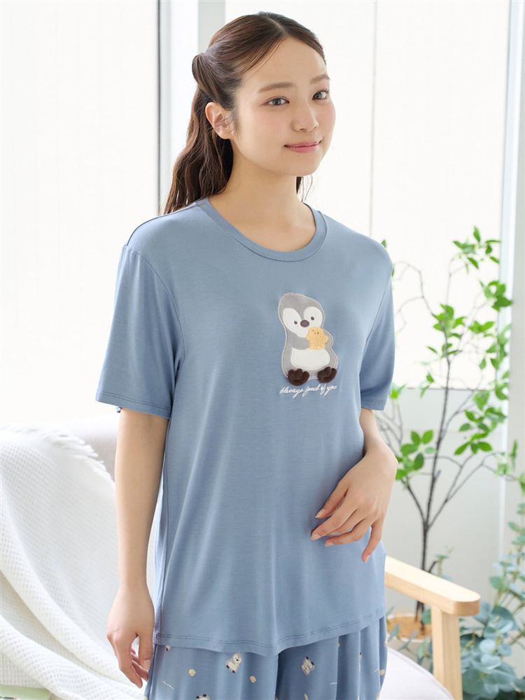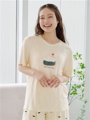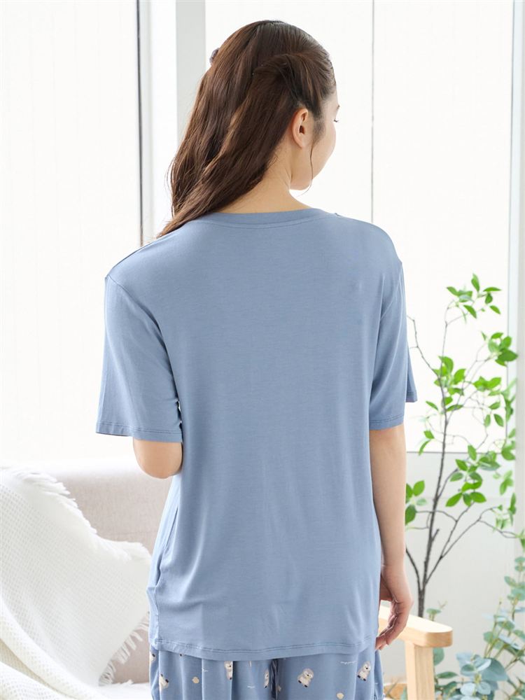 こちらのページは、レーヨン混アニマルプリントTシャツというルームウェア(部屋着)の商品詳細ページです。