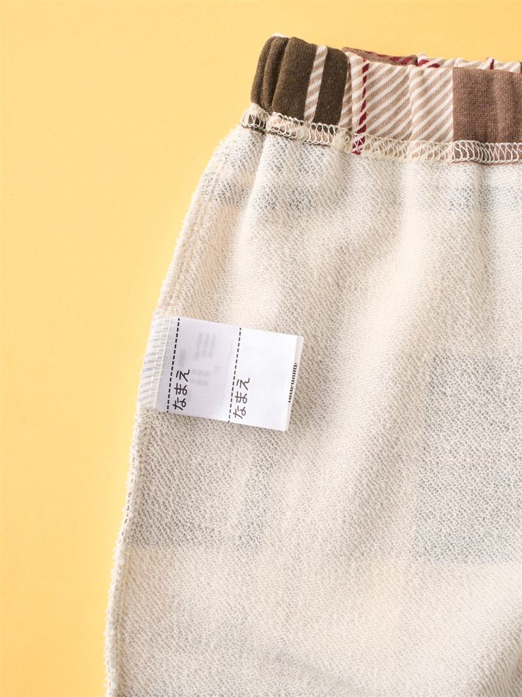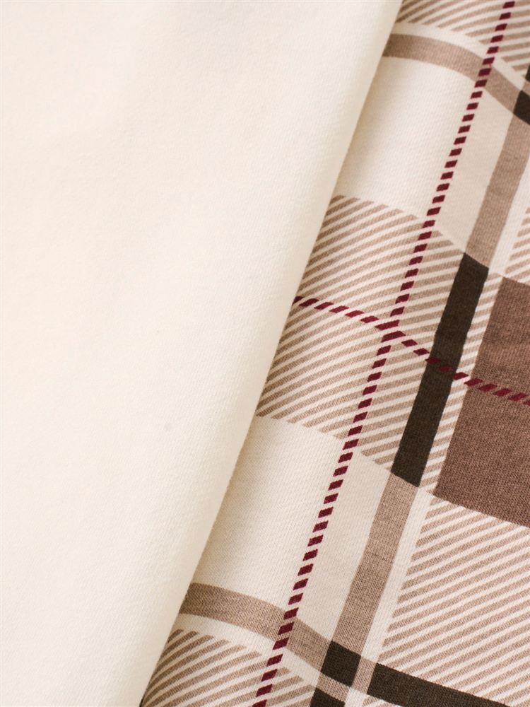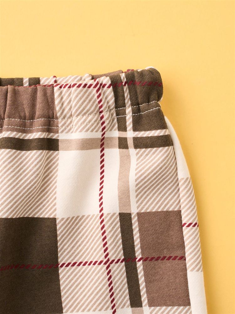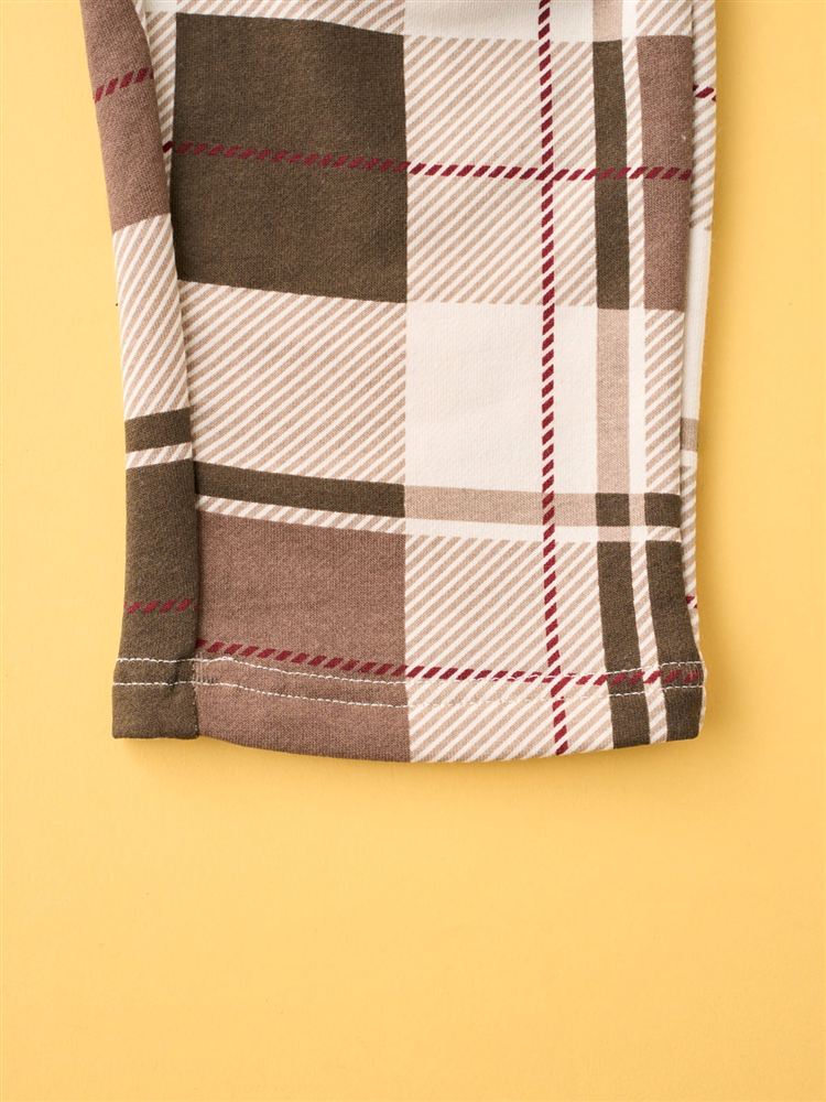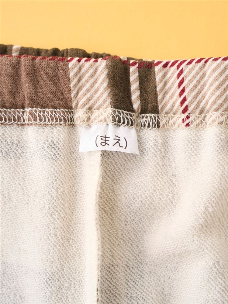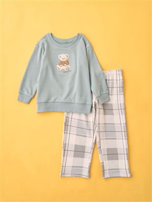 [温度調整]裏毛くまサガラ刺繍チェックボトム長袖パジャマ