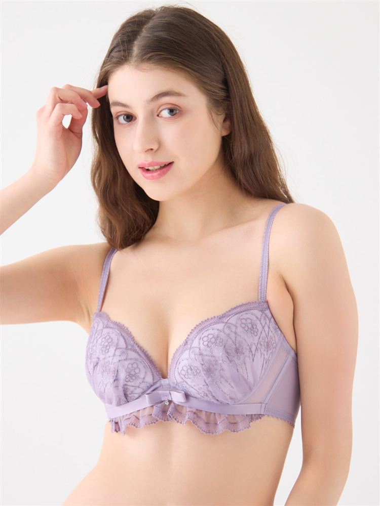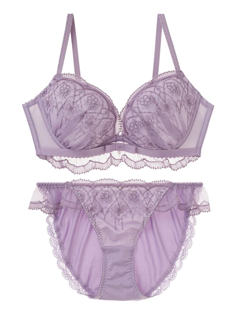 幾何学刺繍ノンワイヤーブラ&ショーツセット