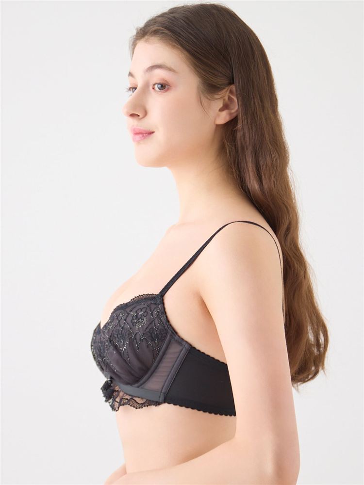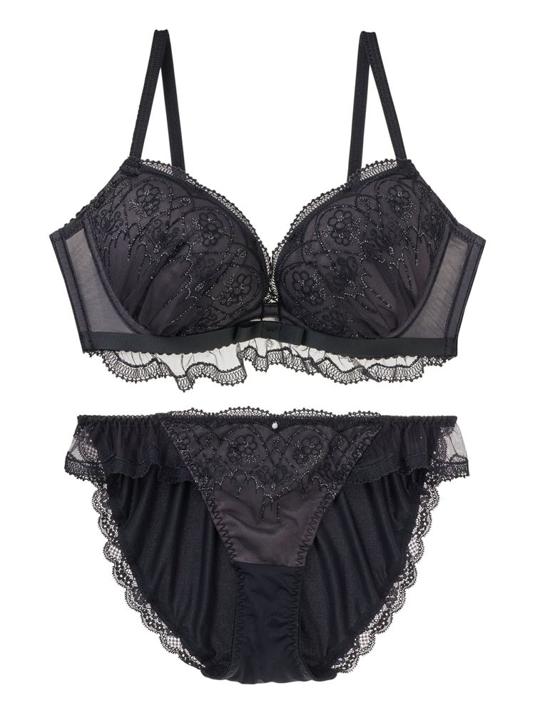 [感激のブラ・寄せる]ノワールショコラブラ&ショーツセット