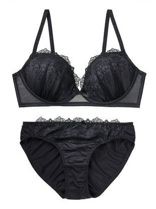 [感激のブラ・寄せる]ノワールショコラブラ&ショーツセット