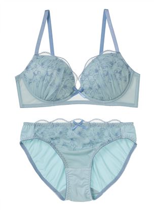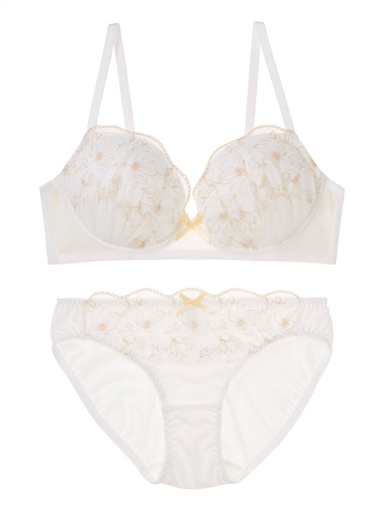 幾何学刺繍ノンワイヤーブラ&ショーツセット