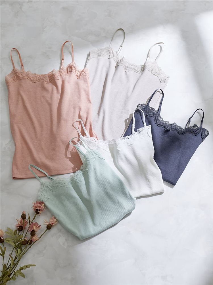 tutuannaオリジナルの商品を扱っている公式通販サイトです。 こちらのページは、[とにかくさらっと涼しい]綿混リブレース付きキャミソールという下着・インナーの商品詳細ページです。 他にも、多数の下着・インナーに関する商品を扱っています。