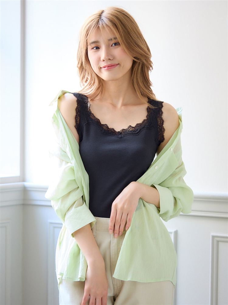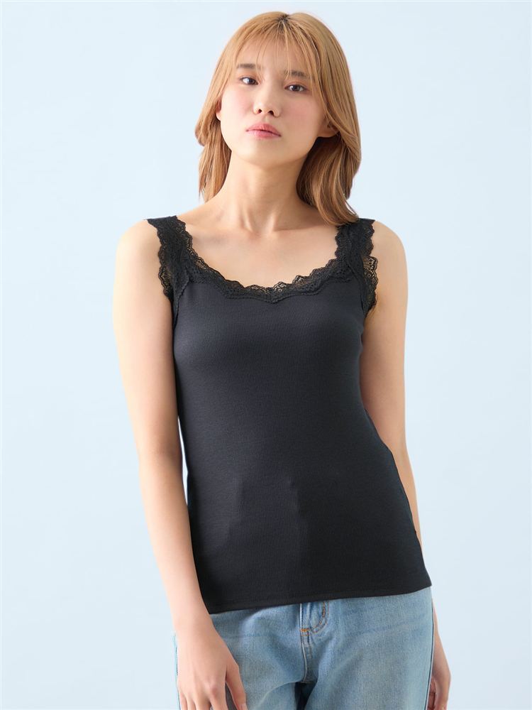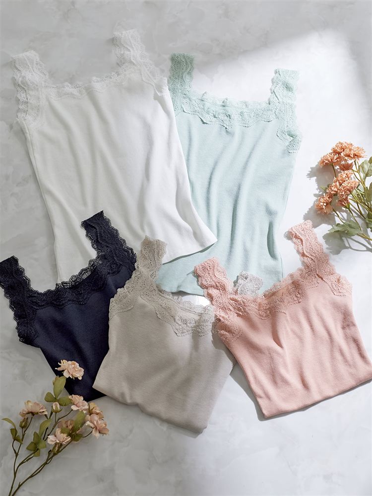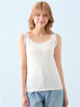 [とにかくさらっと涼しい]レース付きタンクトップ