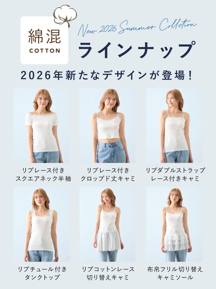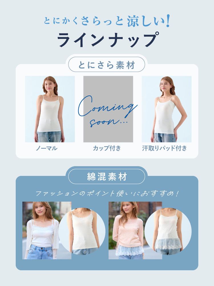 [とにかくさらっと涼しい]綿混リブレース付きキャミソール