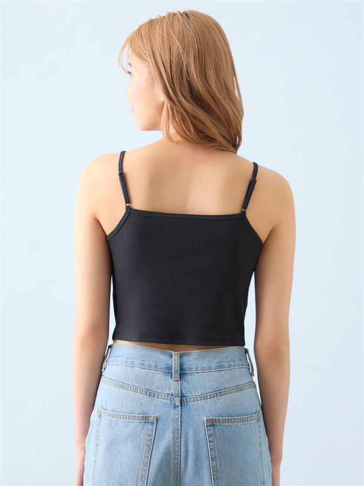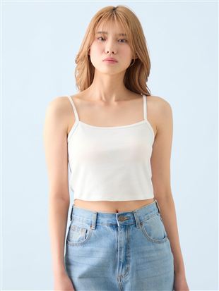 [とにかくさらっと涼しい]綿混リブ布帛フリル切り替えキャミソール