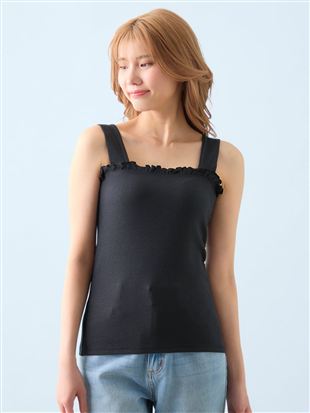 [とにかくさらっと涼しい]綿混リブレース付きタンクトップ