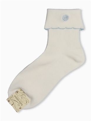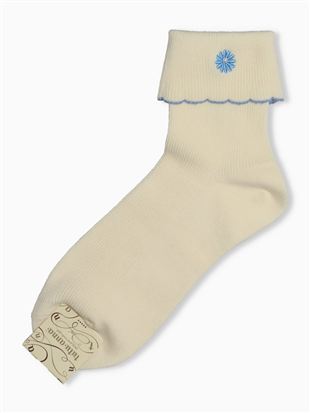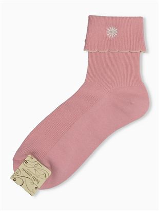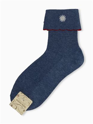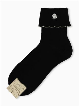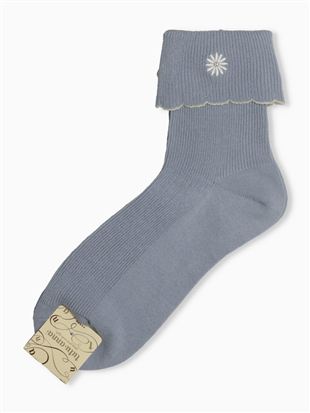 綿混フラワーロゴ刺繍アメリブソックス13cm丈