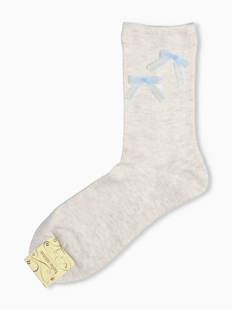 綿混編み上げバックリボンルミー風ソックス13cm丈