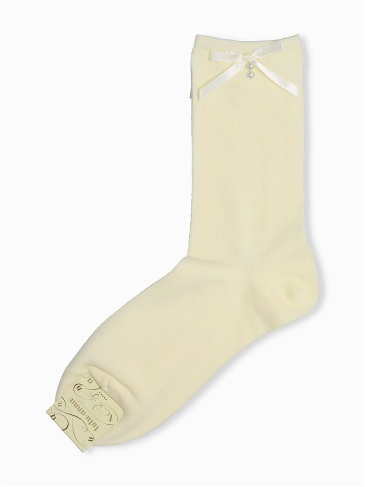 綿混リボンくま刺繍タック編みソックス