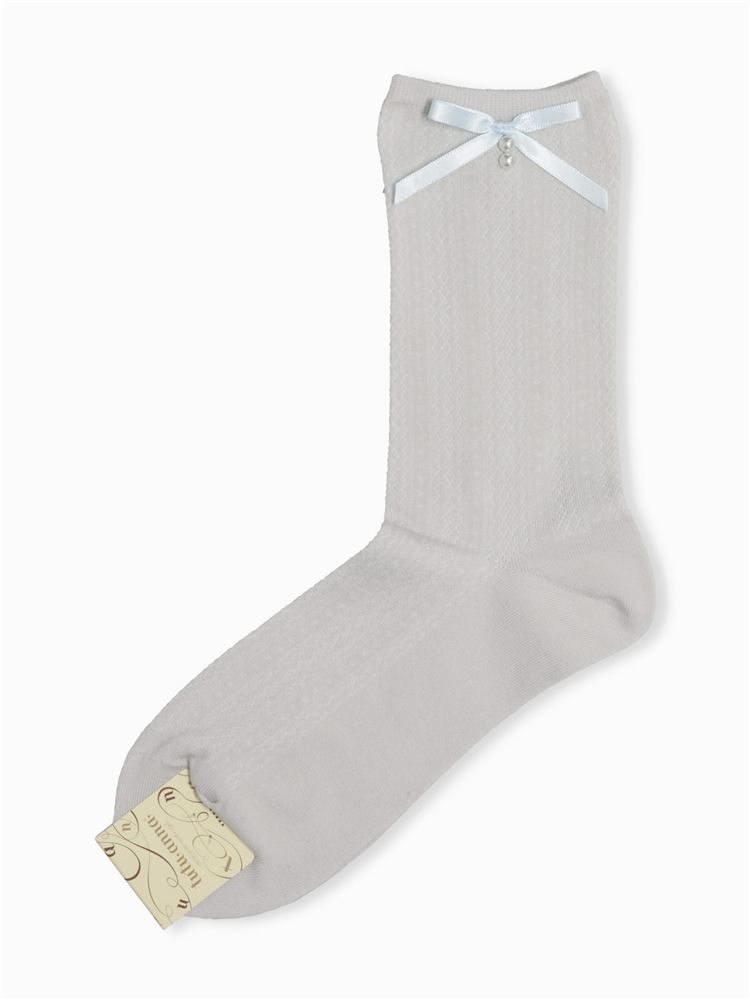 綿混編み上げバックリボンルミー風ソックス13cm丈
