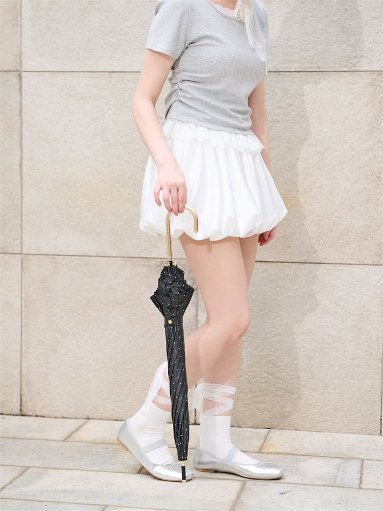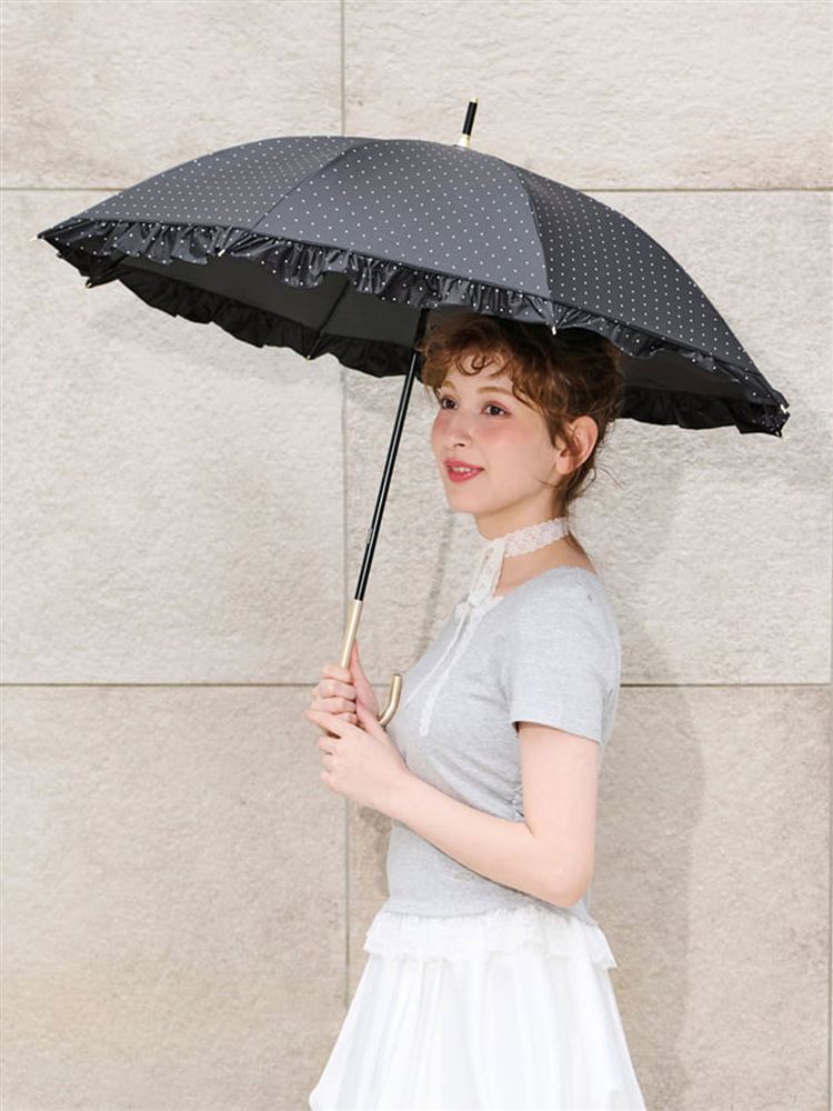 [UVカット・遮光率100%]フリル付きドット柄日傘(晴雨兼用)|ライフスタイル