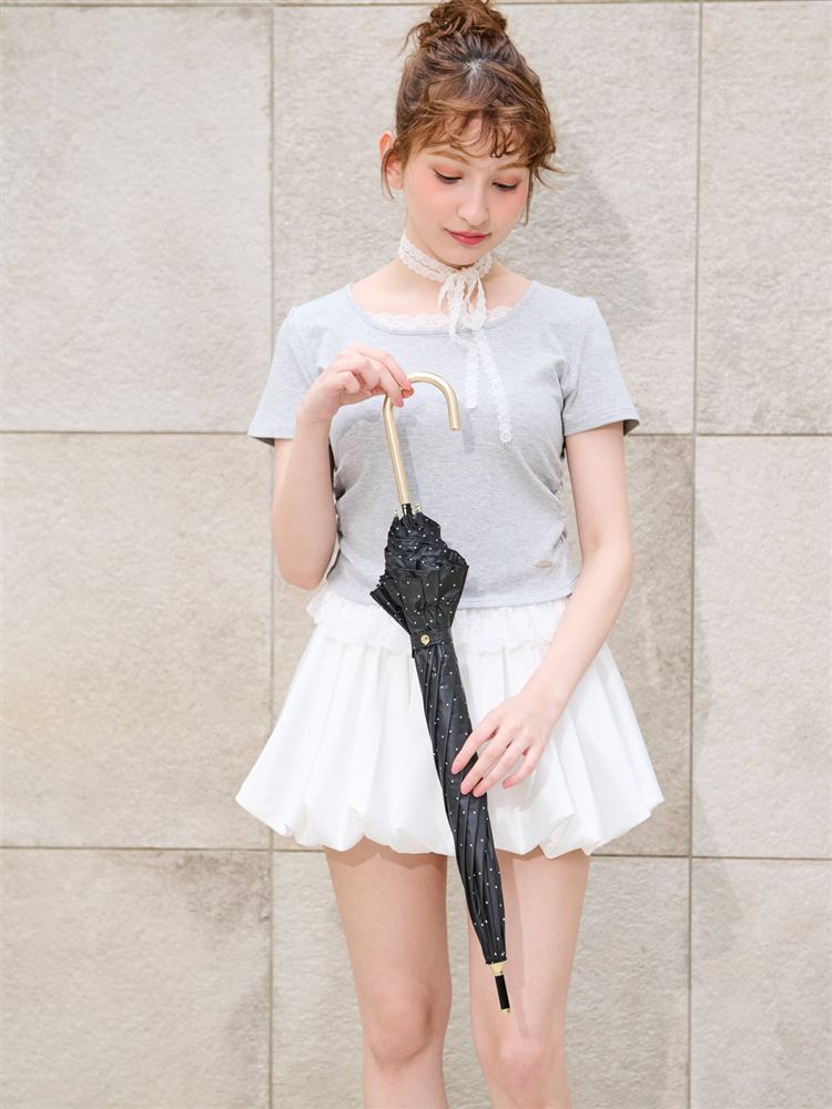 • チュチュアンナの[UVカット・遮光率100%]フリル付きドット柄日傘(晴雨兼用)|26219027