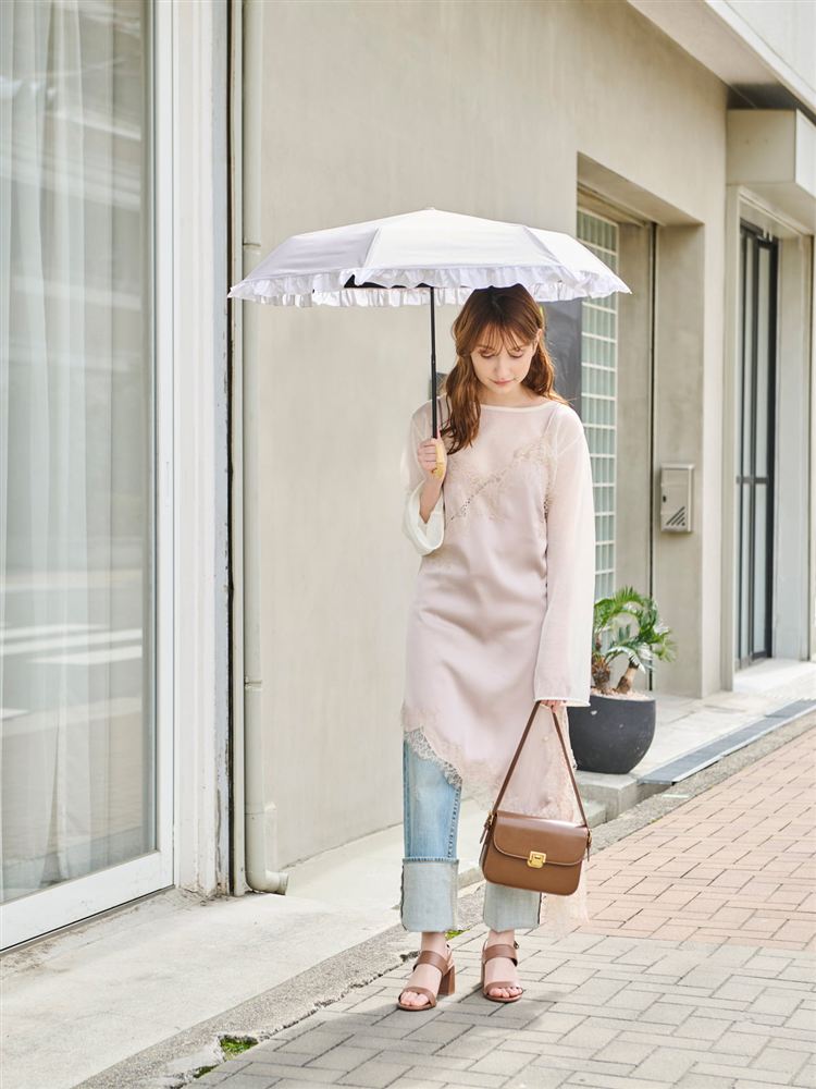 [UVカット・遮光率100%][遮熱]フリル付き折り畳み日傘(晴雨兼用)|ライフスタイル
