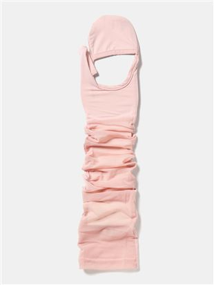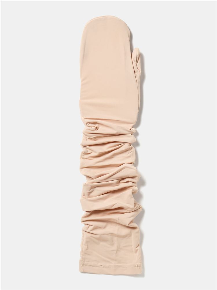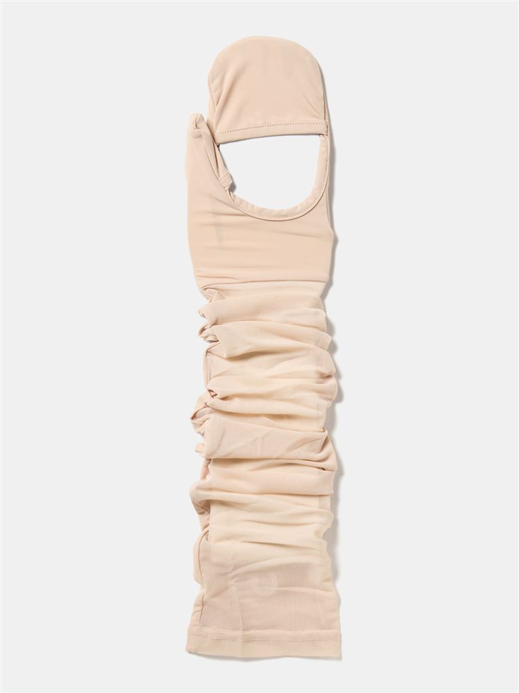 [とにかくさらっと涼しい!]UVカット90%タック編み2段フリルリボン刺繍アームカバー60cm丈