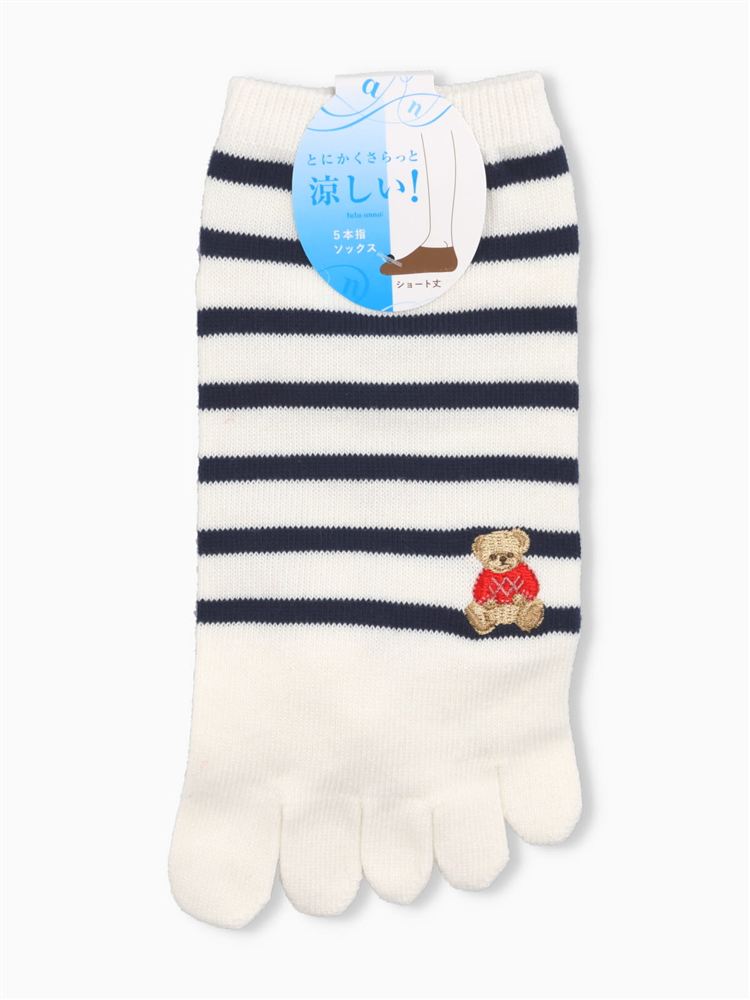tutuannaオリジナルの商品を扱っている公式通販サイトです。 こちらのページは、[とにかくさらっと涼しい!]DRY消臭くま刺繍ボーダー5本指くるぶしソックスというレッグウェアの商品詳細ページです。 他にも、多数のレッグウェアに関する商品を扱っています。