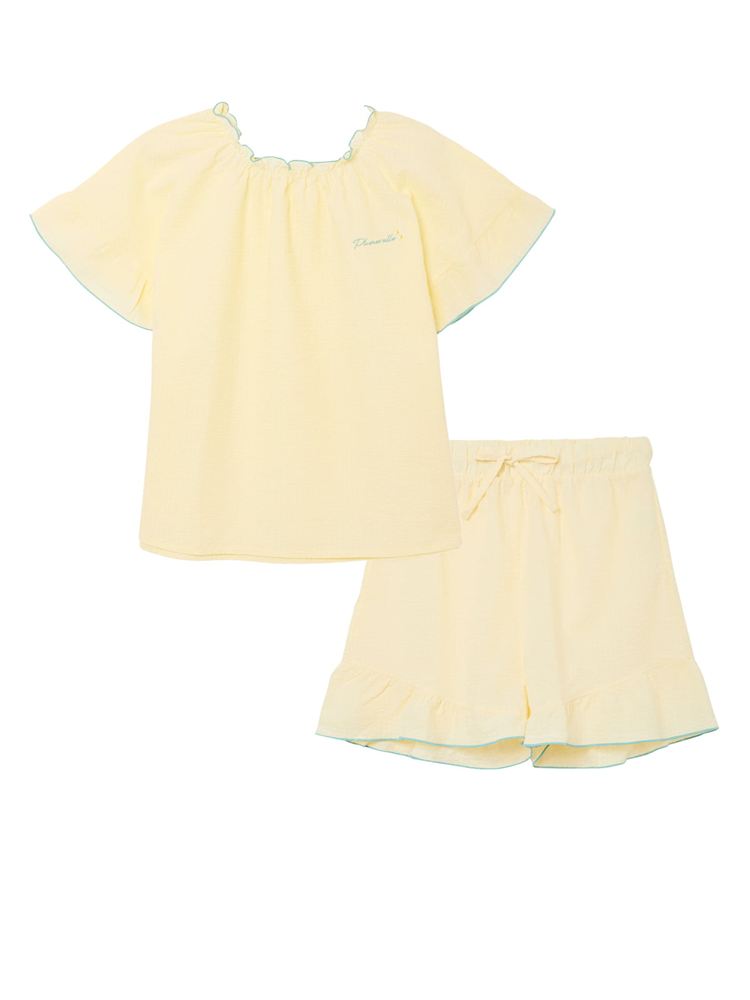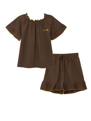 こちらのページは、綿100%プルメリアロゴ刺繍サッカーパジャマというルームウェア(部屋着)の商品詳細ページです。