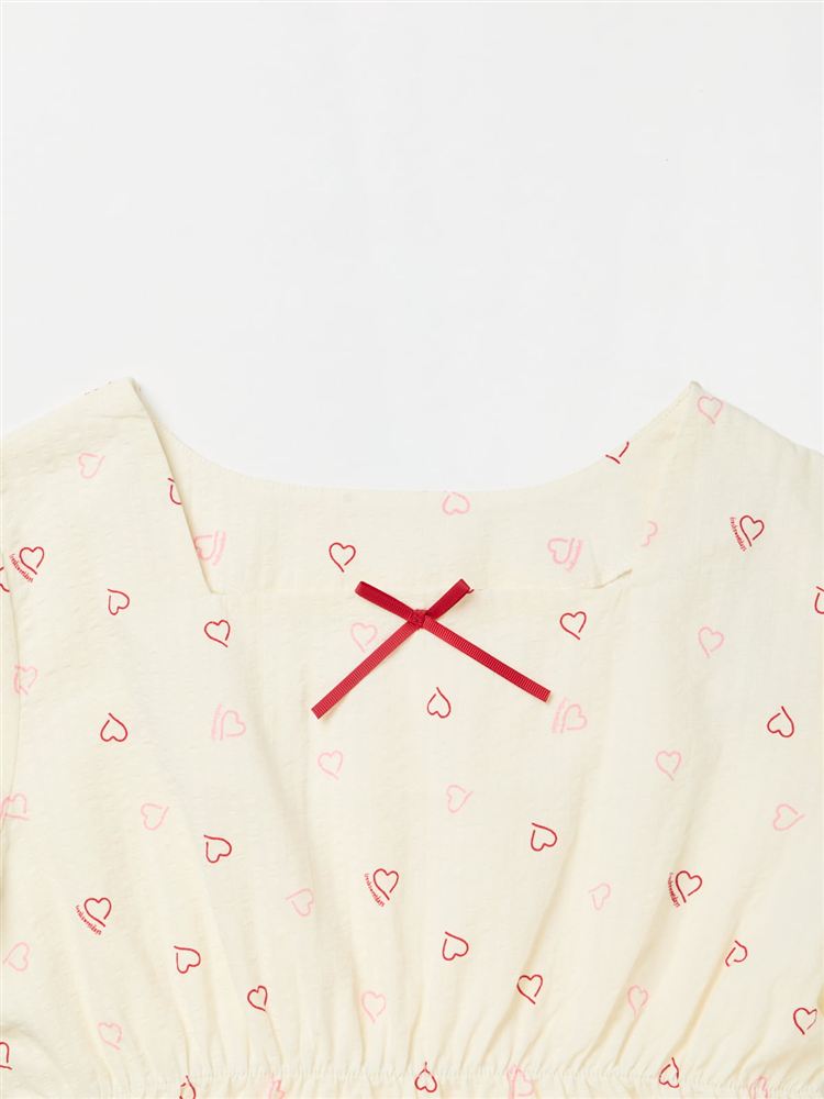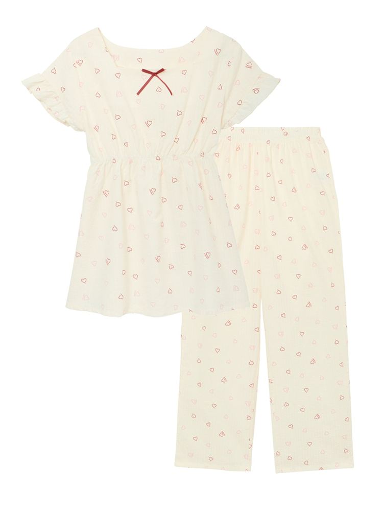 こちらのページは、綿100%ハート柄スクエアネックサッカーパジャマというルームウェア(部屋着)の商品詳細ページです。