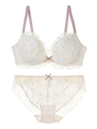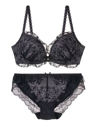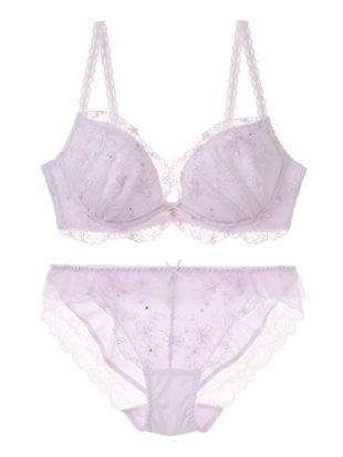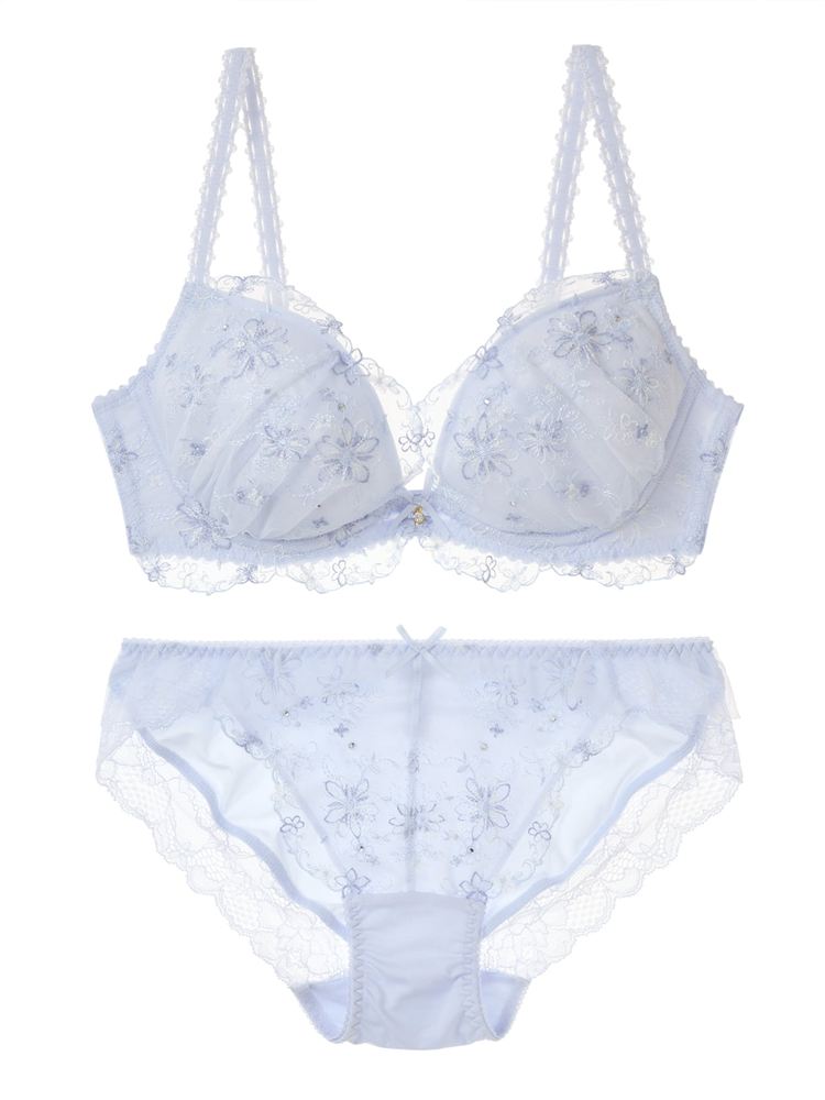 幾何学刺繍ノンワイヤーブラ&ショーツセット