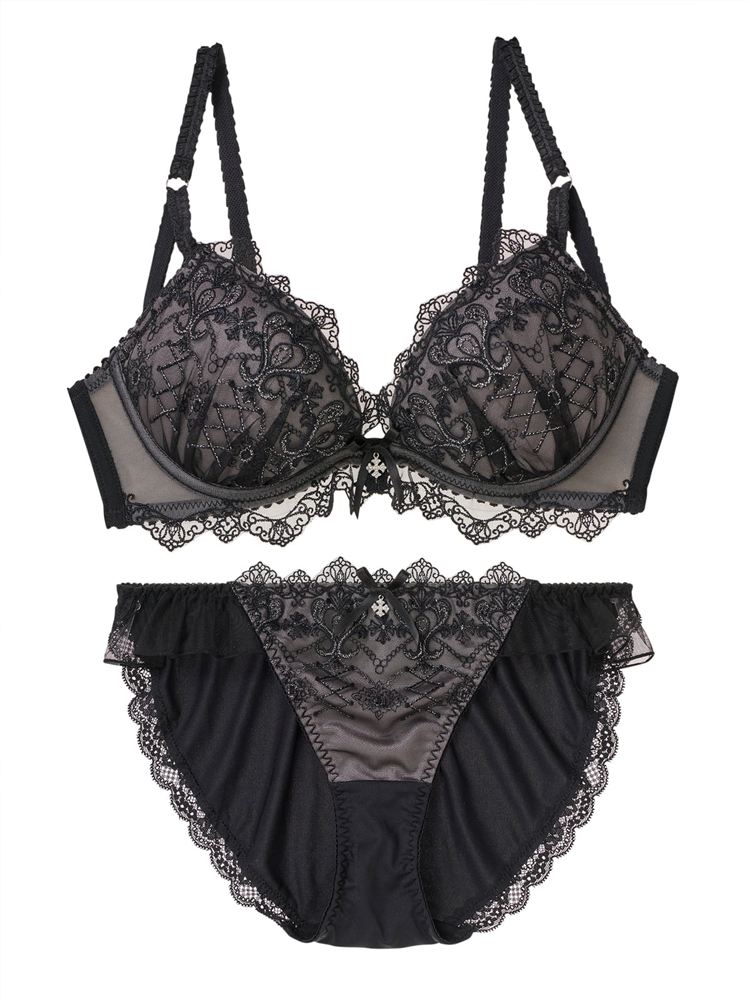 [感激のブラ・寄せる]ノーブルクロムブラ&ショーツセット