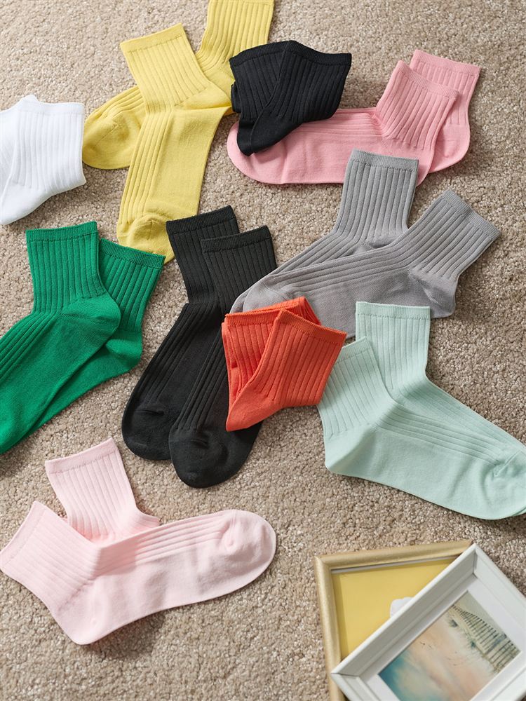 [まるで毛布!のような暖かさ・超薄手]無地リブソックス18cm丈