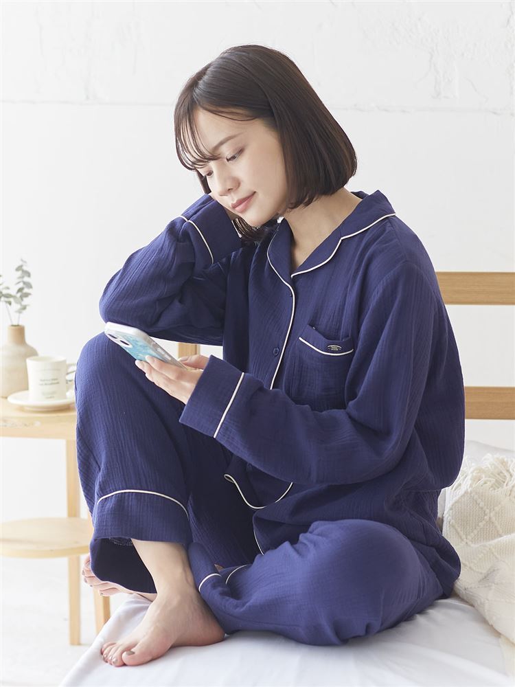 [ゆったり設計パジャマ]綿100%ダブルガーゼパジャマ|ルームウェア(部屋着)