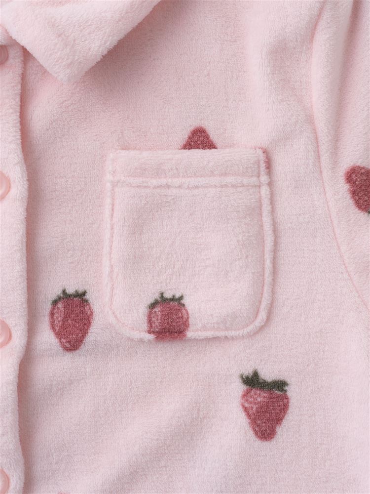 こちらのページは、いちご柄前開き長袖マイクロファイバーパジャマというルームウェア(部屋着)の商品詳細ページです。