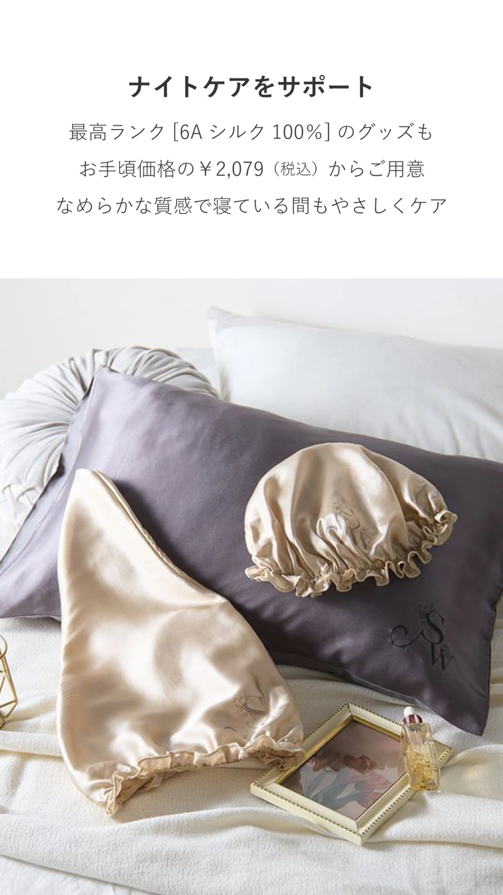 シルク100%ロゴプリントナイトキャップ(ロング)