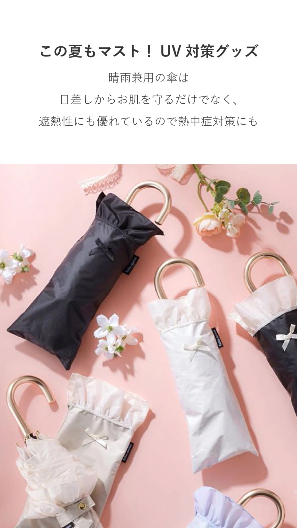 [UVカット・遮光率100%]フリル付き折り畳み日傘(晴雨兼用)の詳細を見る